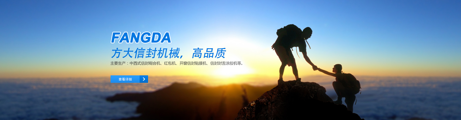 瑞安方大信封機械有限公司,是專業(yè)生產(chǎn)信封機糊合設(shè)備系列產(chǎn)品的企業(yè),主要產(chǎn)品有:中西式信封糊合機、紅包機、開窗信封貼膜機、信封封舌涂膠機等。實力來自規(guī)模,品質(zhì)源自專業(yè)。我廠擁有專業(yè)老練的工程設(shè)計人員,經(jīng)驗豐富的生產(chǎn)安裝人員,嚴(yán)謹(jǐn)認(rèn)真的質(zhì)量檢驗人員,從而保證了所生產(chǎn)機械的優(yōu)良品質(zhì)。此外,我廠也將從技術(shù)上、性能上不斷改進提高,以更好的滿足客戶的需求?!翱蛻糁辽?,服務(wù)為本”是我廠長期一貫的服務(wù)理念,從安裝、測試、保養(yǎng)、維修等售后服務(wù),我們會給予客戶充足的信息資訊與技術(shù)支持,因此在業(yè)界獲得良好的口碑及信譽,您的滿意是我們的榮耀!歡迎您來電查詢、來人參觀,我們一定能給你滿意的答復(fù)!秉承“顧客至上,銳意進取”的經(jīng)營理念,堅持“客戶為先”的原則為廣大客戶提供溫馨的服務(wù)。歡迎惠顧!